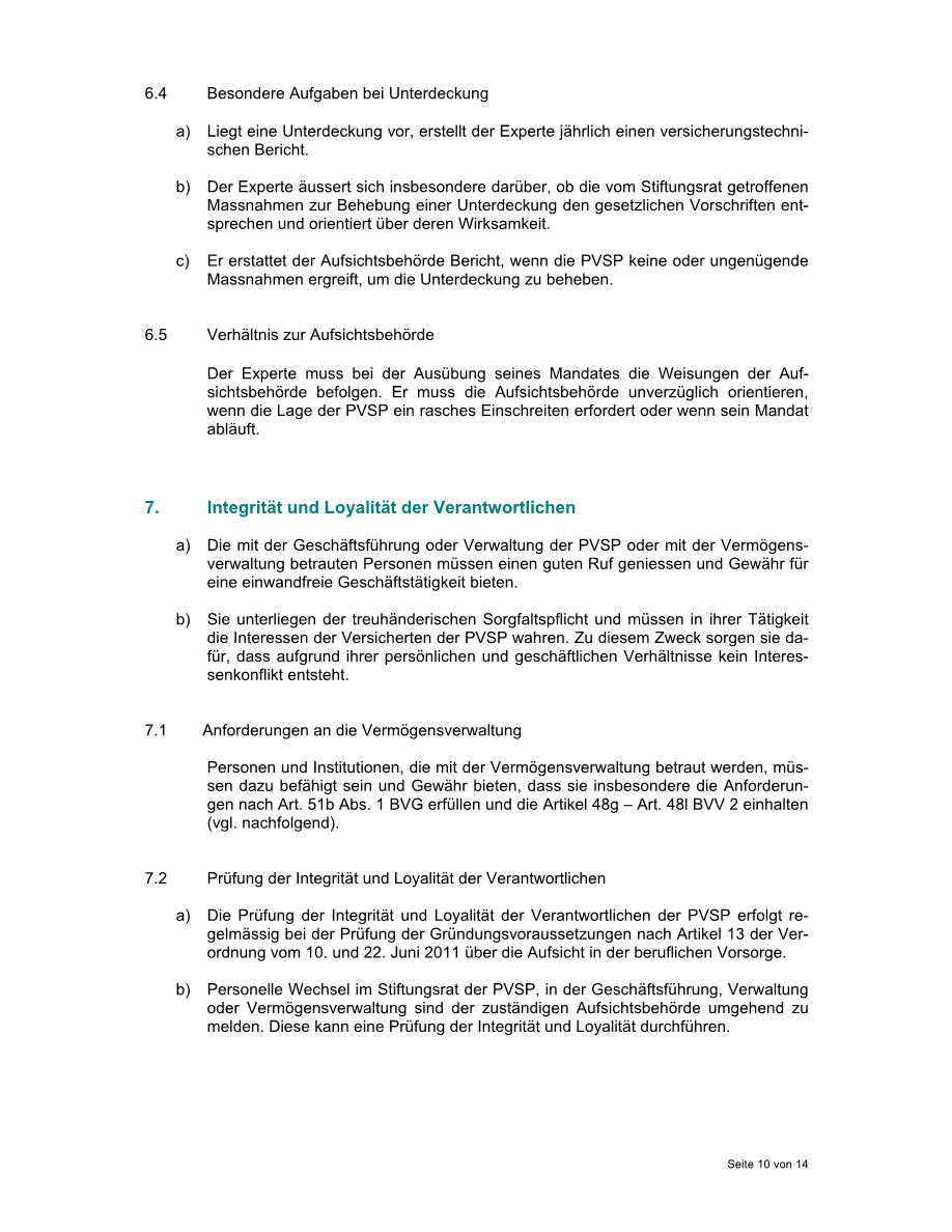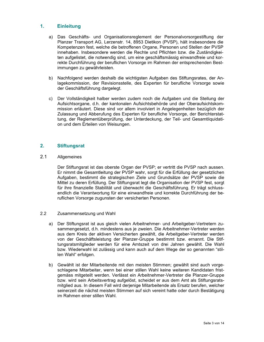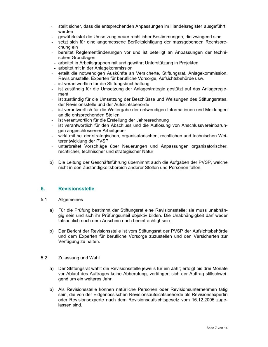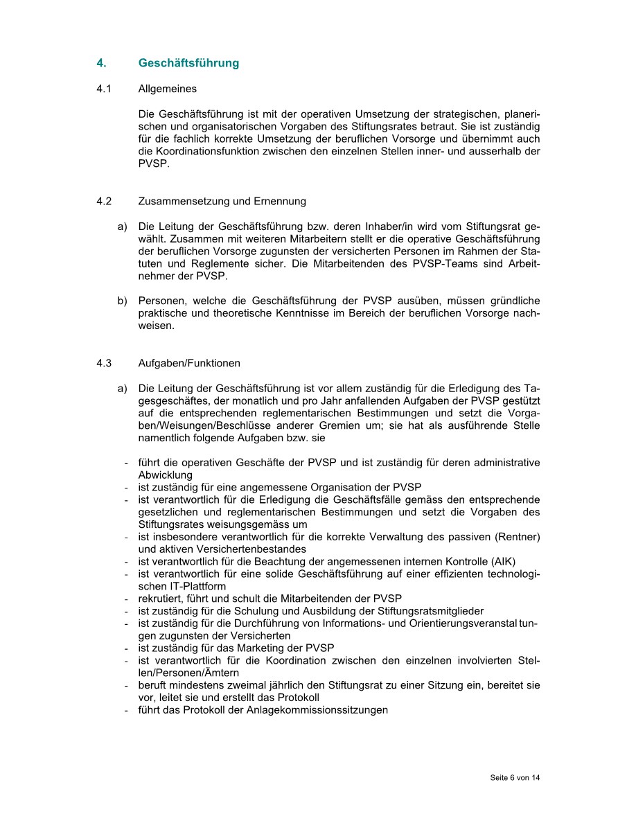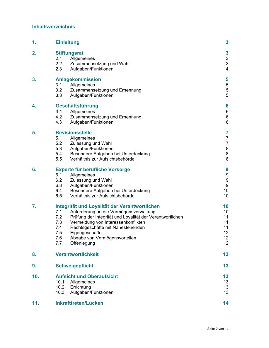 Dieses Reglement ist ein zentraler Bestandteil unserer Rechtsgrundlagen. Es legt ein besonderes Augenmerk auf die Aufgaben und Kompetenzen von Stiftungsrat, Geschäftsführung, PK-Experte und Revisionsstelle. Mehr zu unserer Aufbaustruktur finden Sie in der Rubrik Organisation.