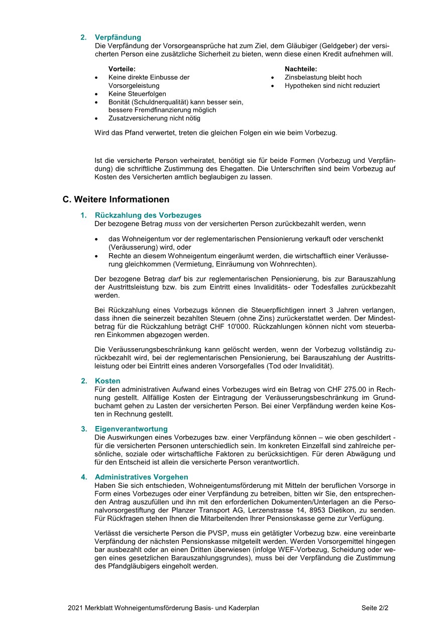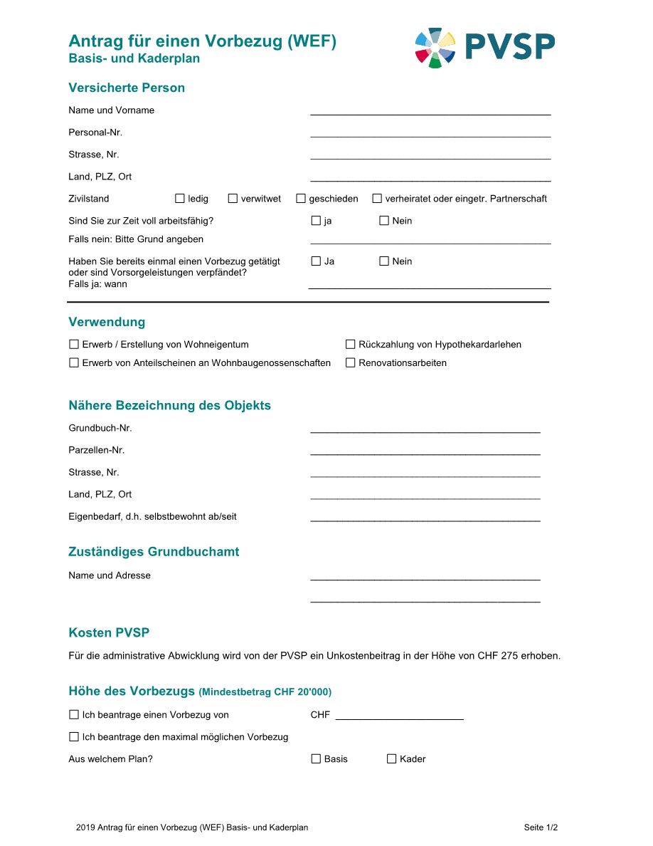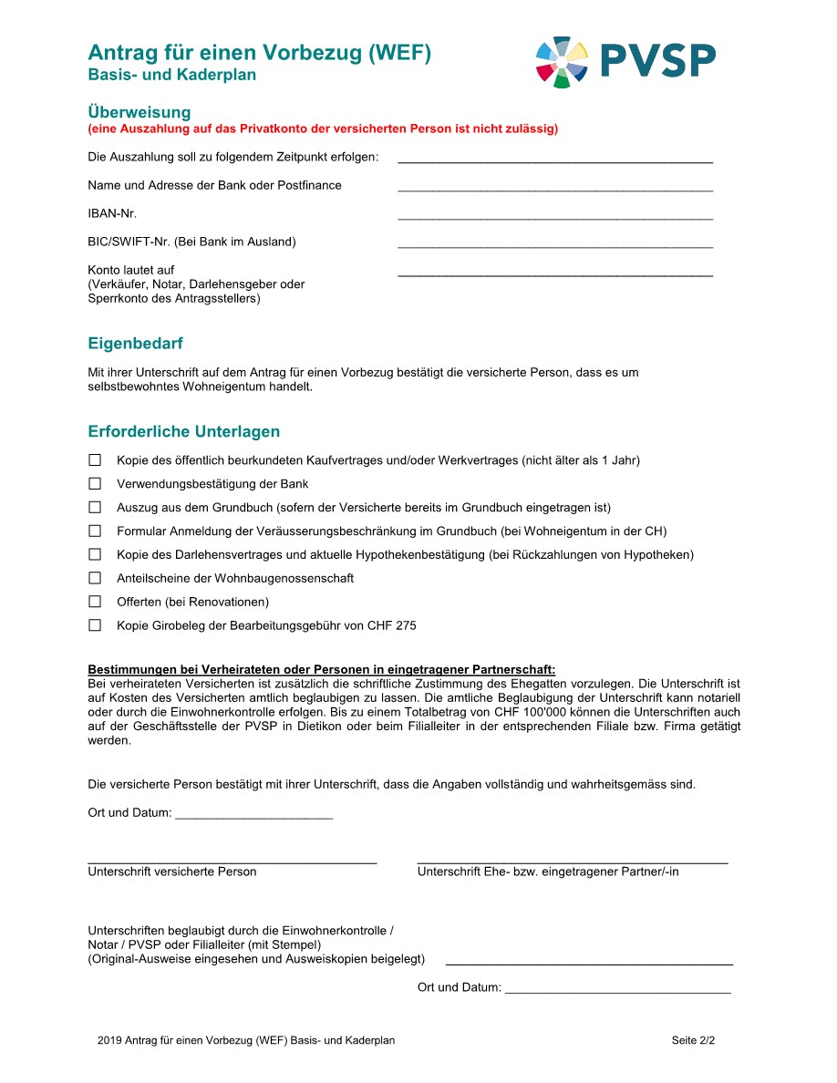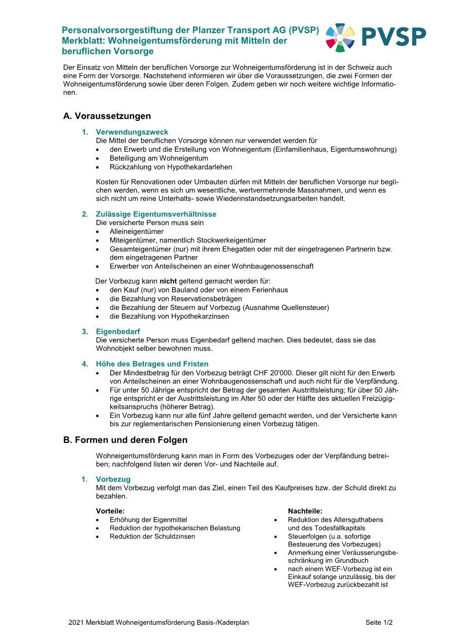 Wissenswertes und weiterführende Informationen zu den Voraussetzungen, Folgen, Vor- und Nachteilen von Vorbezug oder Verpfändung entnehmen Sie unseren Merkblättern im nebenstehenden Downloadbereich. Hier finden Sie ausserdem die nötigen Antragsformulare und die Vorlage für die Meldung an das Grundbuchamt.