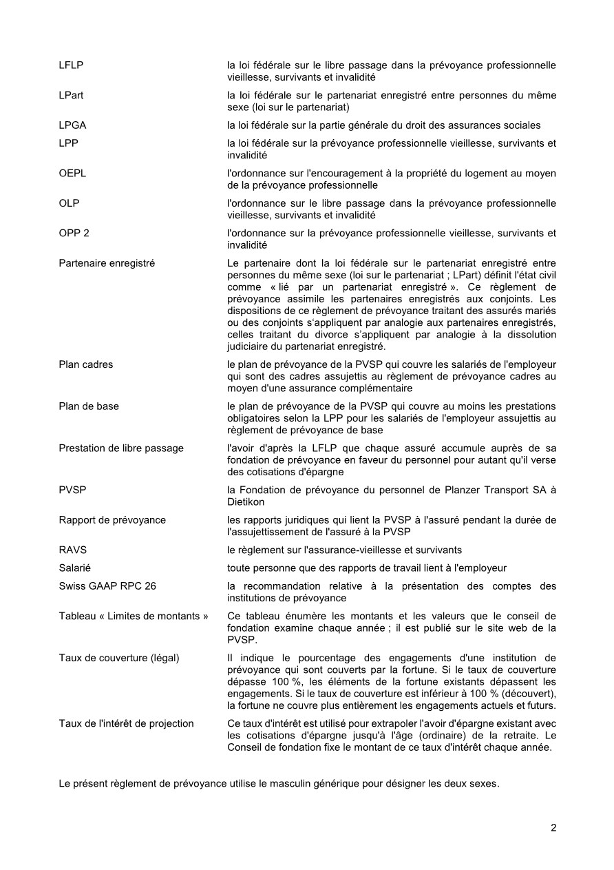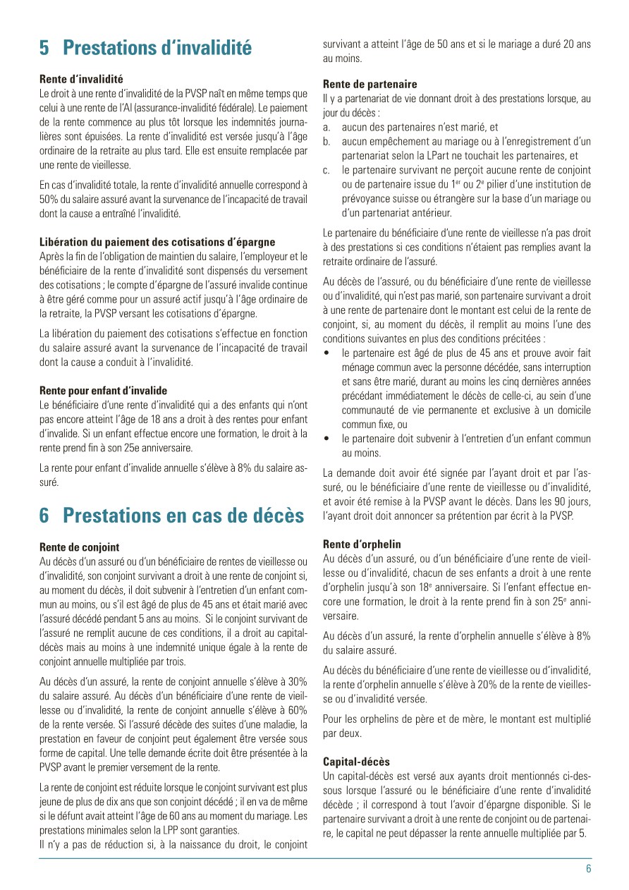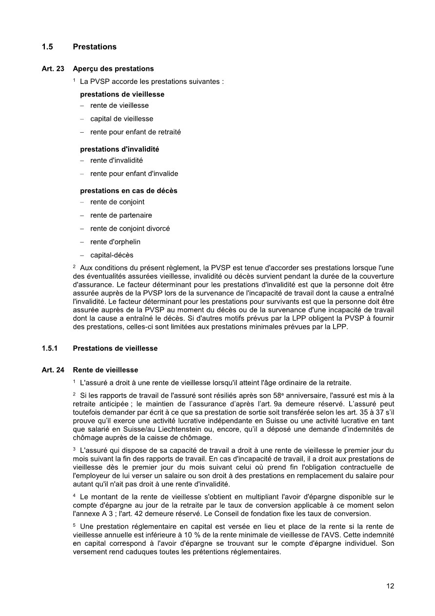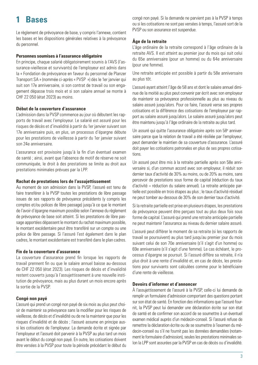 Pour vous, en tant qu’assurés de la PVSP, le règlement de base est le document principal. Il définit, qui est astreint à l’assurance et qui peut être affilié à la PVSP, quelles prestations sont assurées et sous quelles dispositions qui en a le droit. De plus, le financement des cotisations est réglé, c’est-à-dire à quel taux de pourcentage s’élèvent les cotisations employé/employeur. De plus, le règlement de base définit la coordination des prestations des assurances sociales diverses lorsqu’un cas d’assurance intervient. Sous la rubrique « Prestations » , ce document décrit les cas possibles.