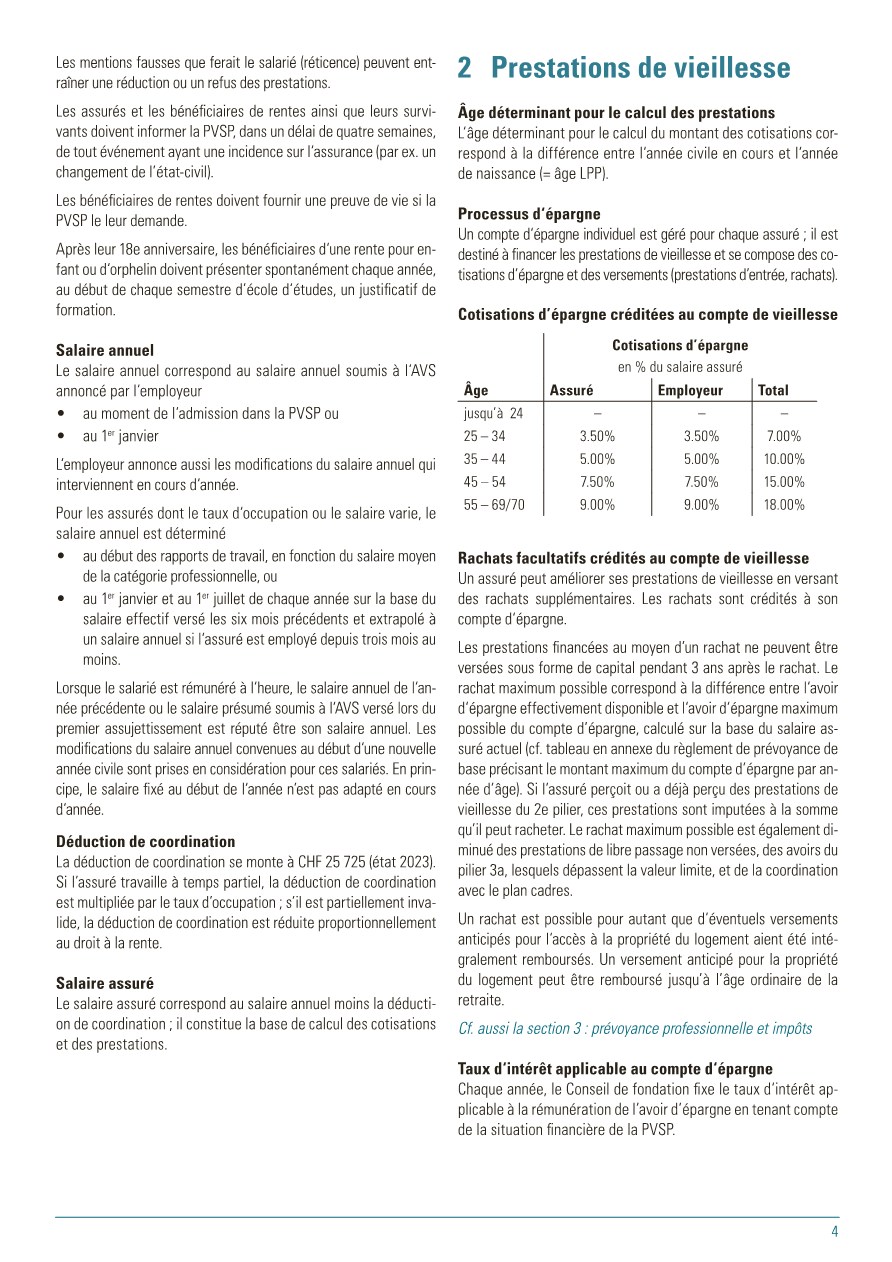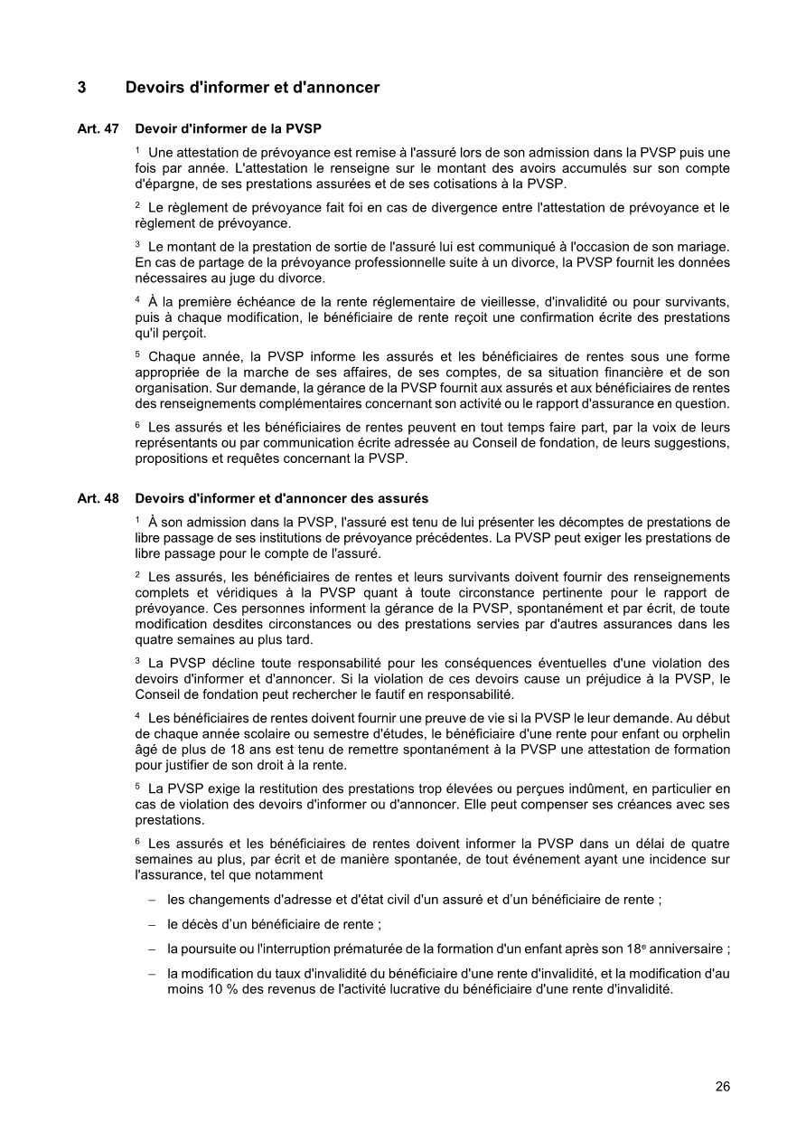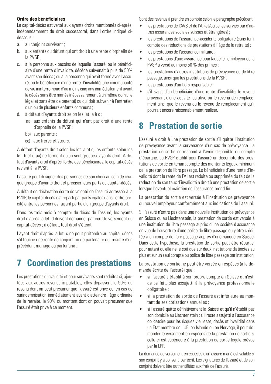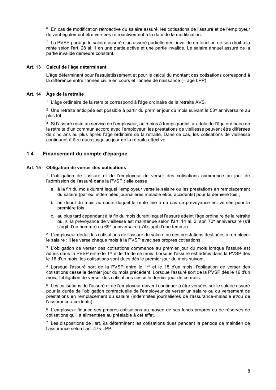 Pour vous, en tant qu’assurés de la PVSP, le règlement de base est le document principal. Il définit, qui est astreint à l’assurance et qui peut être affilié à la PVSP, quelles prestations sont assurées et sous quelles dispositions qui en a le droit. De plus, le financement des cotisations est réglé, c’est-à-dire à quel taux de pourcentage s’élèvent les cotisations employé/employeur. De plus, le règlement de base définit la coordination des prestations des assurances sociales diverses lorsqu’un cas d’assurance intervient. Sous la rubrique « Prestations » , ce document décrit les cas possibles.