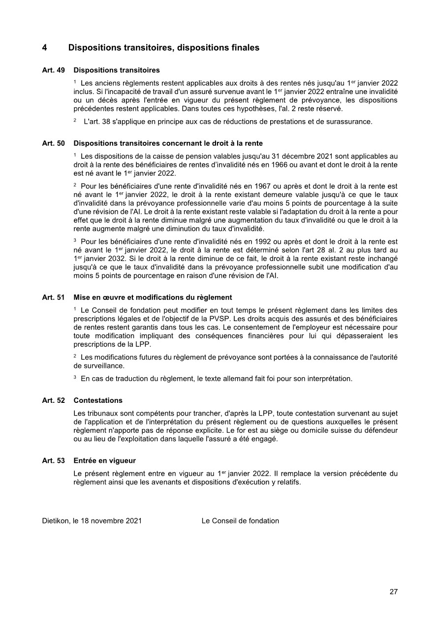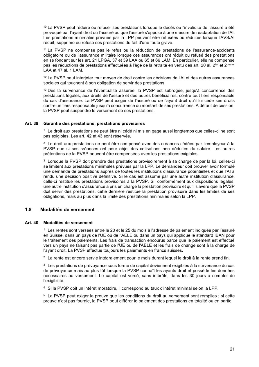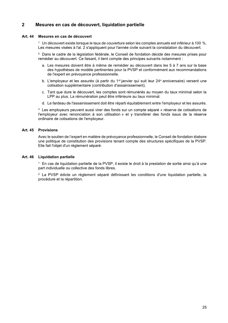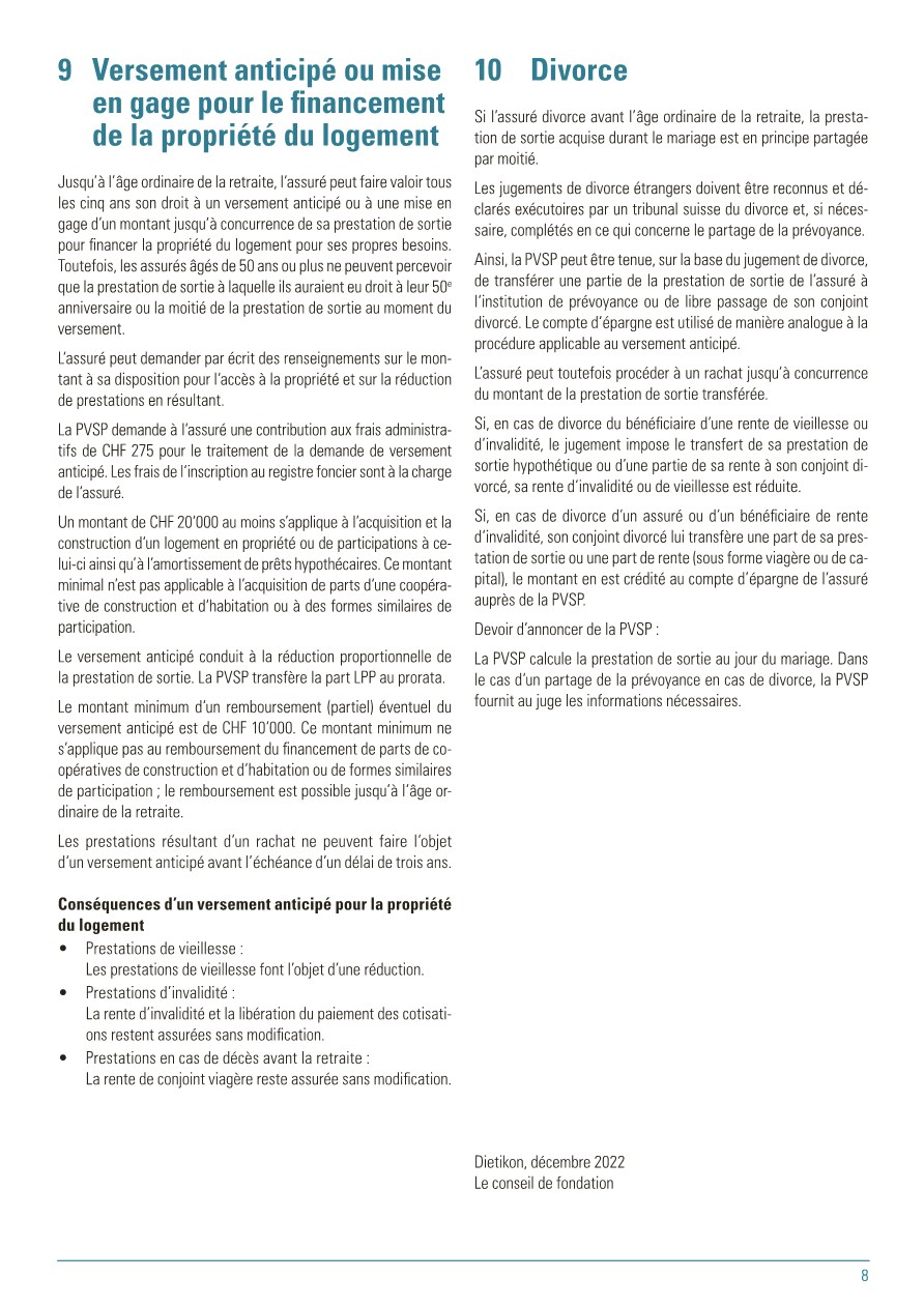 Pour vous, en tant qu’assurés de la PVSP, le règlement de base est le document principal. Il définit, qui est astreint à l’assurance et qui peut être affilié à la PVSP, quelles prestations sont assurées et sous quelles dispositions qui en a le droit. De plus, le financement des cotisations est réglé, c’est-à-dire à quel taux de pourcentage s’élèvent les cotisations employé/employeur. De plus, le règlement de base définit la coordination des prestations des assurances sociales diverses lorsqu’un cas d’assurance intervient. Sous la rubrique « Prestations » , ce document décrit les cas possibles.