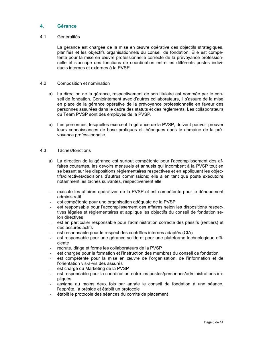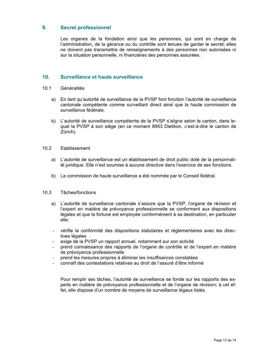 Notre règlement d’organisation détaille les droits et obligations de toutes les parties, auxquelles la PVSP est en relation et qui sont impliquées.
