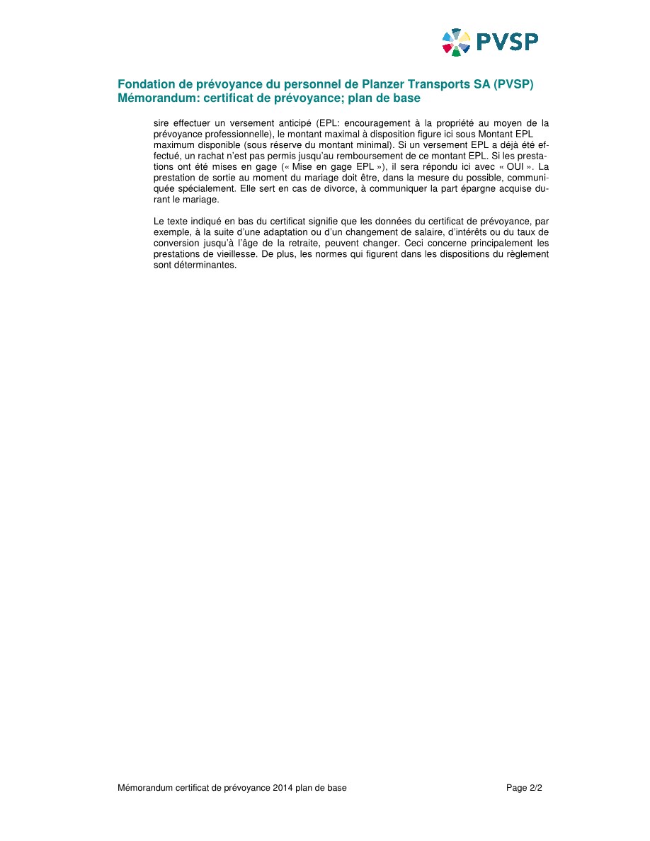 Dès que votre contrat de travail avec l’entreprise Planzer-Groupe en Suisse commence, vous êtes admis dans la PVSP – sous la condition que vous gagnez plus de 22'050 CHF par année. Nous vous confirmons votre entrée par le biais de votre certificat de prévoyance se référant à votre plan de prévoyance. Si vous travaillez sur la base d’un contrat d’appel ou avez-vous un contrat de travail à durée limitée de maximum 3 mois, vous n’êtes pas assurés auprès de la PVSP