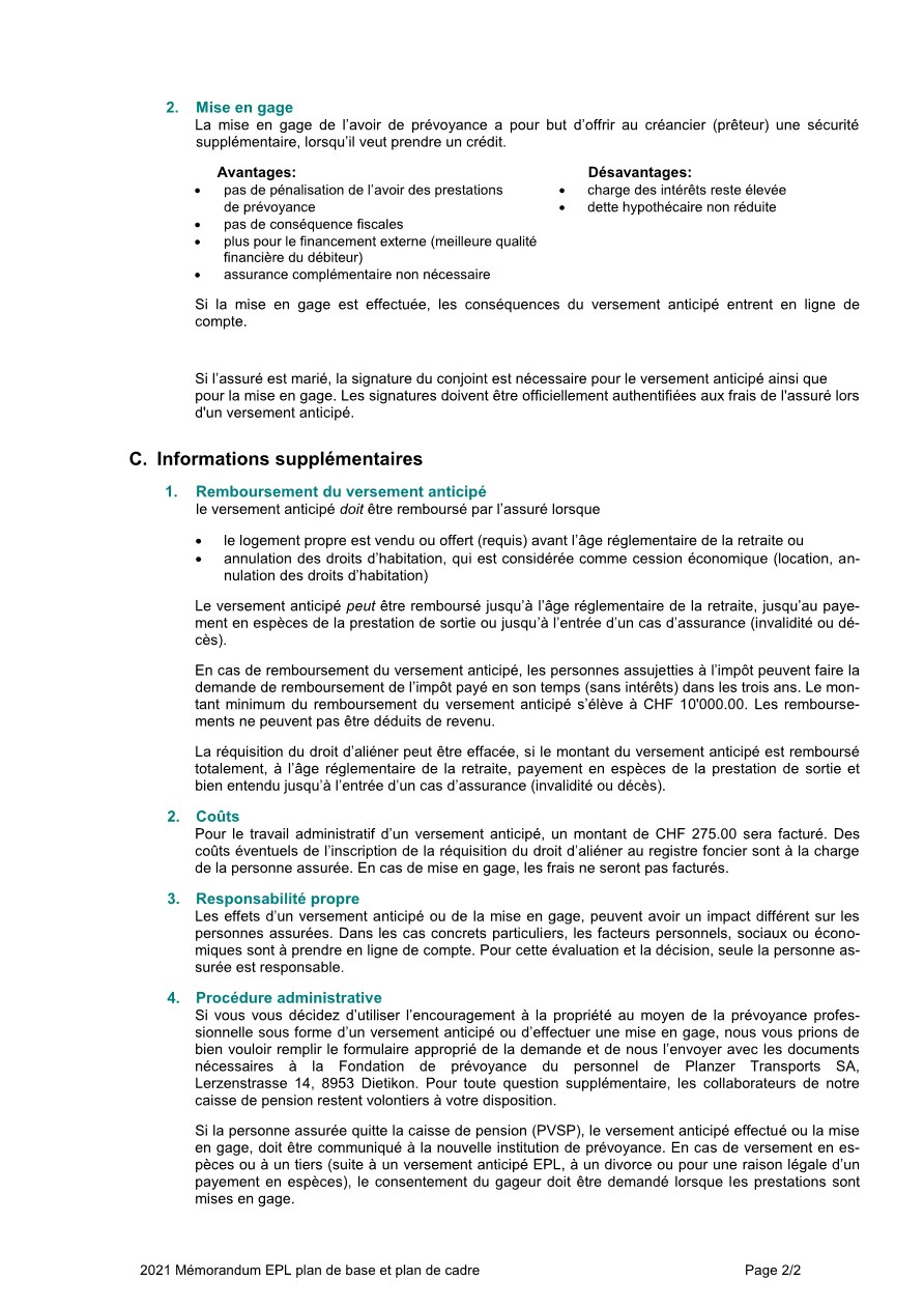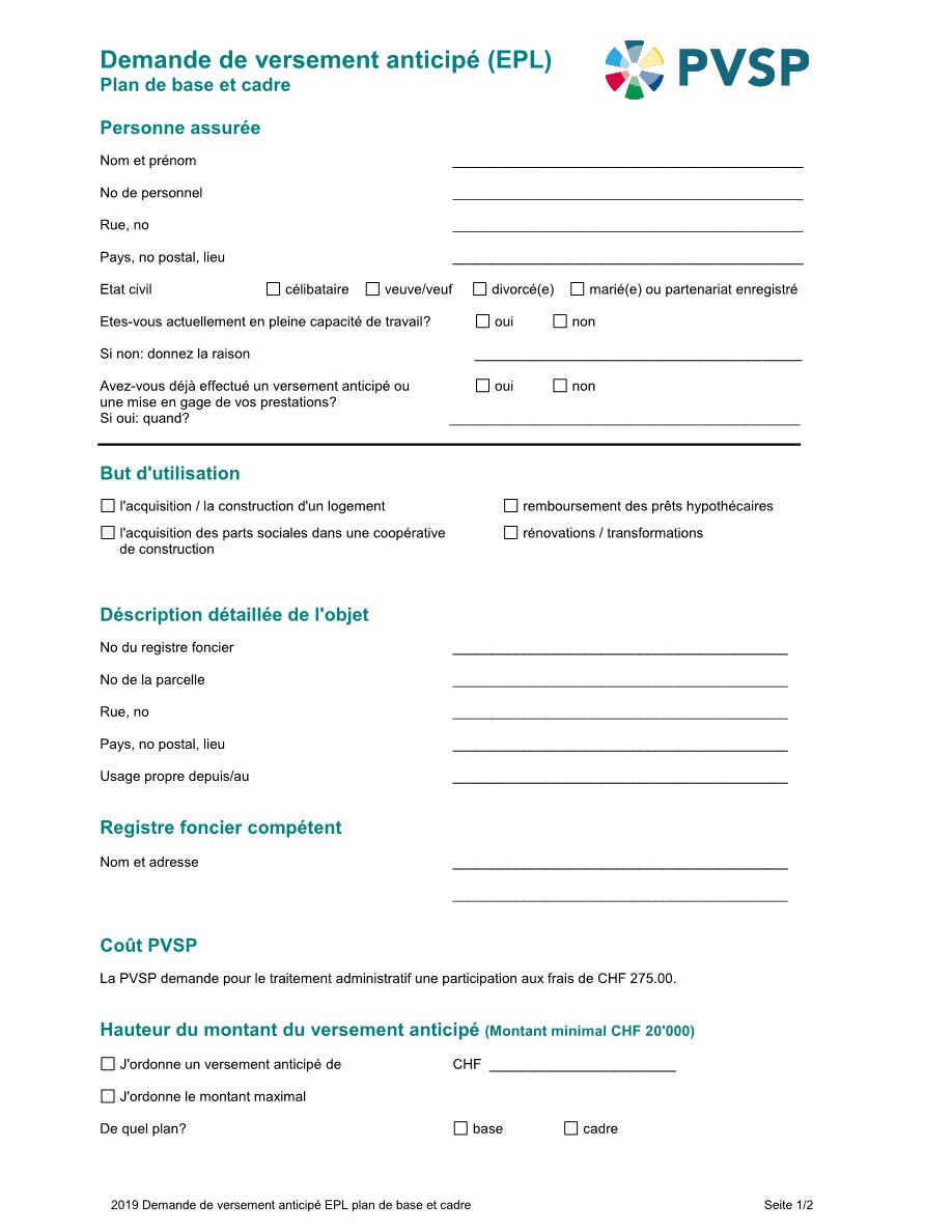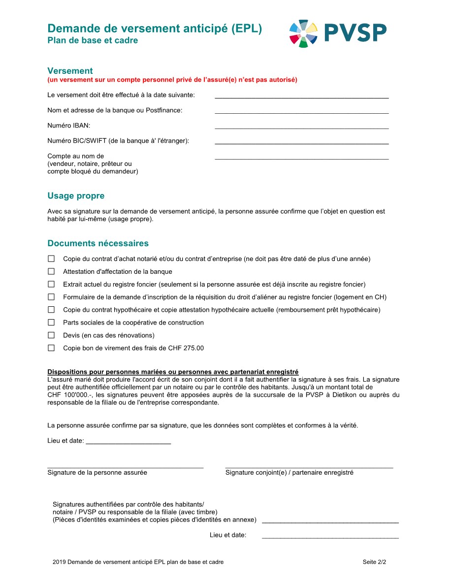 Vous trouvez, dans notre mémorandum ci-dessous, tout ce qui est bon à savoir et de plus amples informations sur les conditions, les conséquences, les avantages et les inconvénients d’un versement anticipé et d’une mise en gage. De même, vous trouvez les formulaires nécessaires aux différentes procédures.