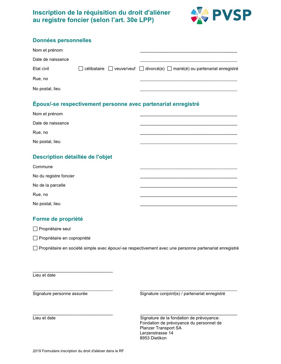 A titre d’alternative au versement anticipé, vous pouvez proposer de mettre en gage vos prestations de prévoyance. Au moyen de cette procédure, aucun montant ne viendra en déduction de votre avoir de la caisse de pension, mais par contre il servira de garantie pour l’institut qui vous accorde un prêt dans le cadre d’un contrat de nantissement. De ce fait, vos prestations de notre caisse de pension ne seront pas réduites et comme il n’y a pas de mouvements d’argent, il n’y a d’imposition fiscale.