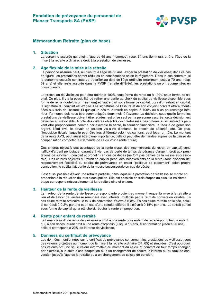 Afin que vous puissiez planifier de manière optimale votre retraite, nous organisons des journées d’information pour futurs retraités du Groupe Planzer (cf. événements). Plus d’infos sur votre rente de l’AVS se trouvent sur l’interface de l’AVS/AI. Bien-entendu que le Team de la PVSP est volontiers à votre disposition pour un entretien personnel.